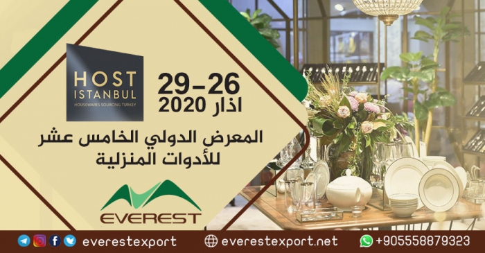 يفتح المعرض الدولي الخامس عشر للأدوات المنزلية ، أبوابه في الفترة من 26 إلى 29 مارس 2020 في مركز Tüyap للمعارض ، حيث أحدث منتجات الزجاج والخزف والسيراميك بالإضافة إلى الأجهزة المنزلية الكهربائية المبتكرة وأدوات المطبخ المصنوعة من الفولاذ المقاوم للصدأ وأدوات المطبخ البلاستيكية ومستلزمات الحدائق والديكور. يقدم HOST Istanbul الآلاف من المنتجات الجديدة من مئات العارضين.